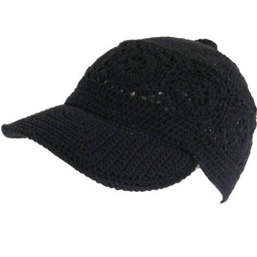 COTTON, MESH KNIT, CROCHET - VISOR BALL CAP / HAT ** BLACK: Small / Medium